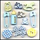 Everybody loves a baby! Our baby buttons, brads and charms are lovable too: Baby blocks & bottles, storks, diaper pins, a new baby, and pink and blue themes.